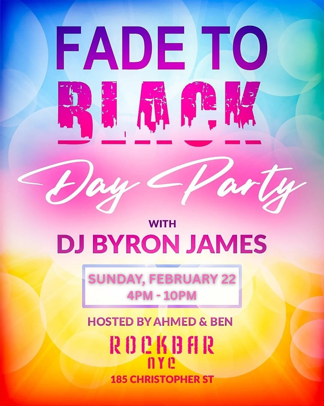 PULL UP! This Sunday is FADE TO BLACK's Day Party with DJ Byron James spinning house, classics, and R&B jams. It's always a vibe! Spread the word! Bring a friend! Shout it out!!