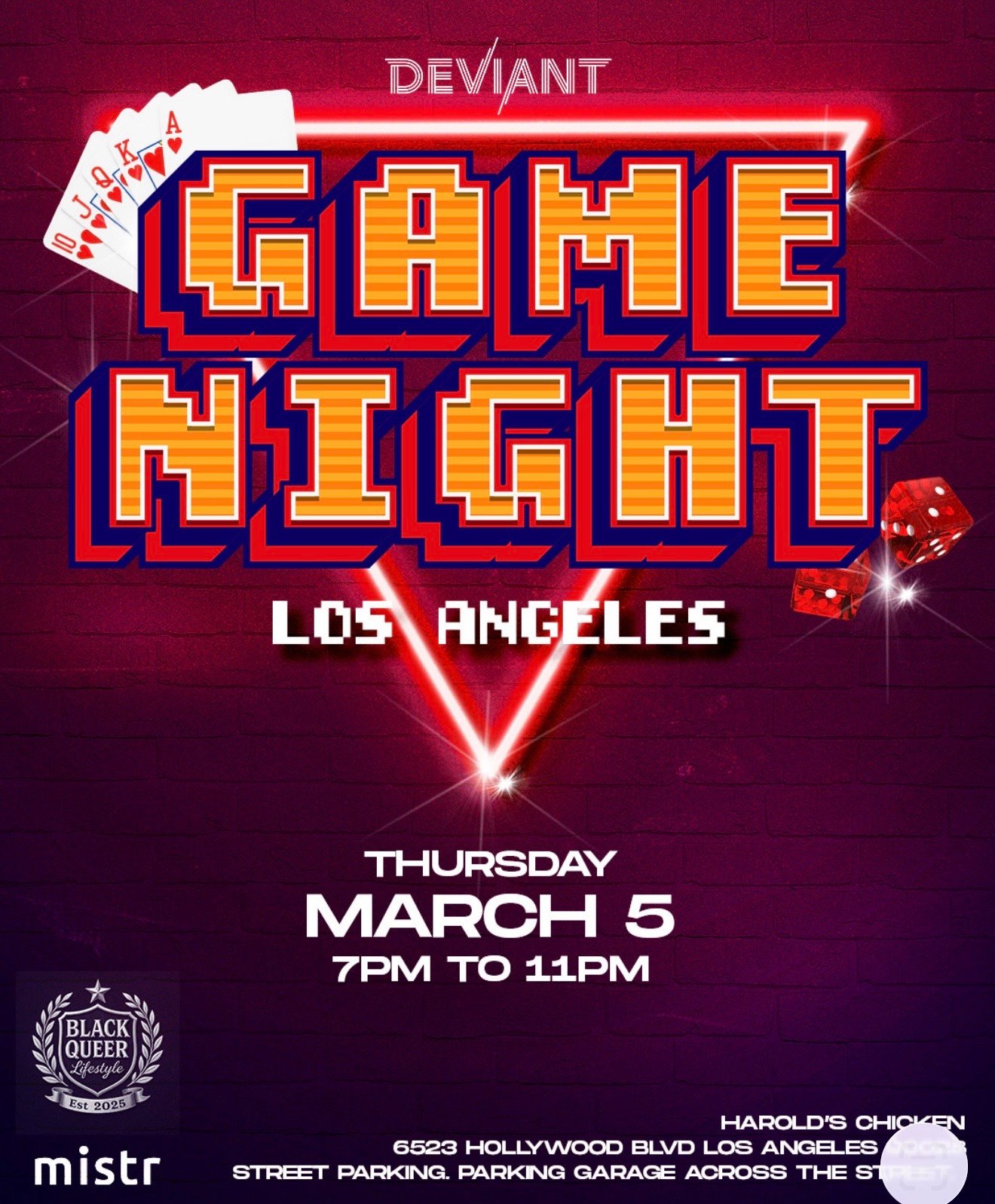 Game Night, food, drinks and Dj
