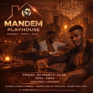 A clothing-optional gathering created by Black men for Black men where games, laughter and curiosity shift naturally into closeness and connection. Playful energy, familiar faces, and a space to ease into the weekend with freedom and brotherhood.