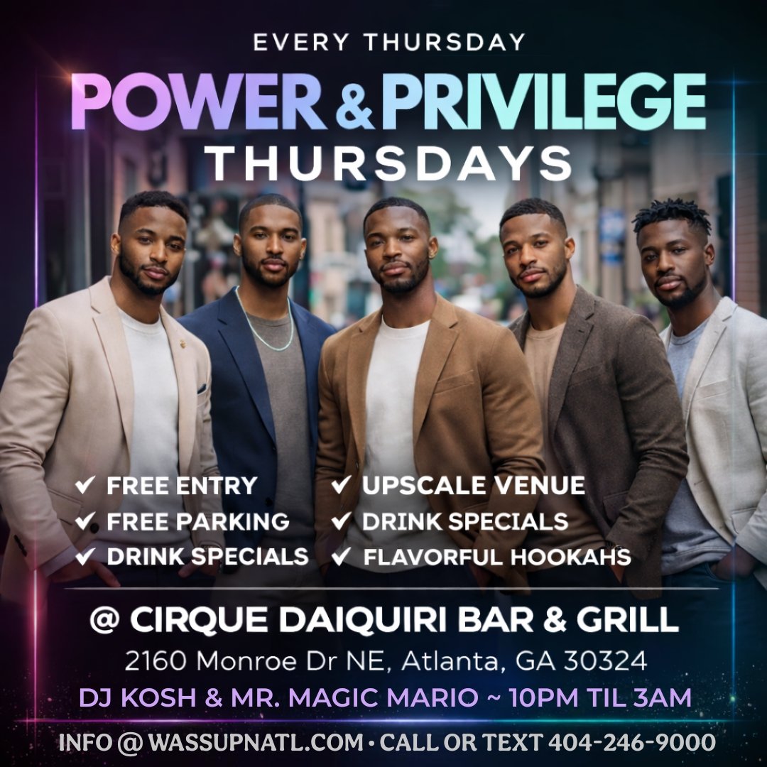 POWER & PRIVILEGE THURSDAYS @ CIRQUE DAIQUIRI BAR & GRILL