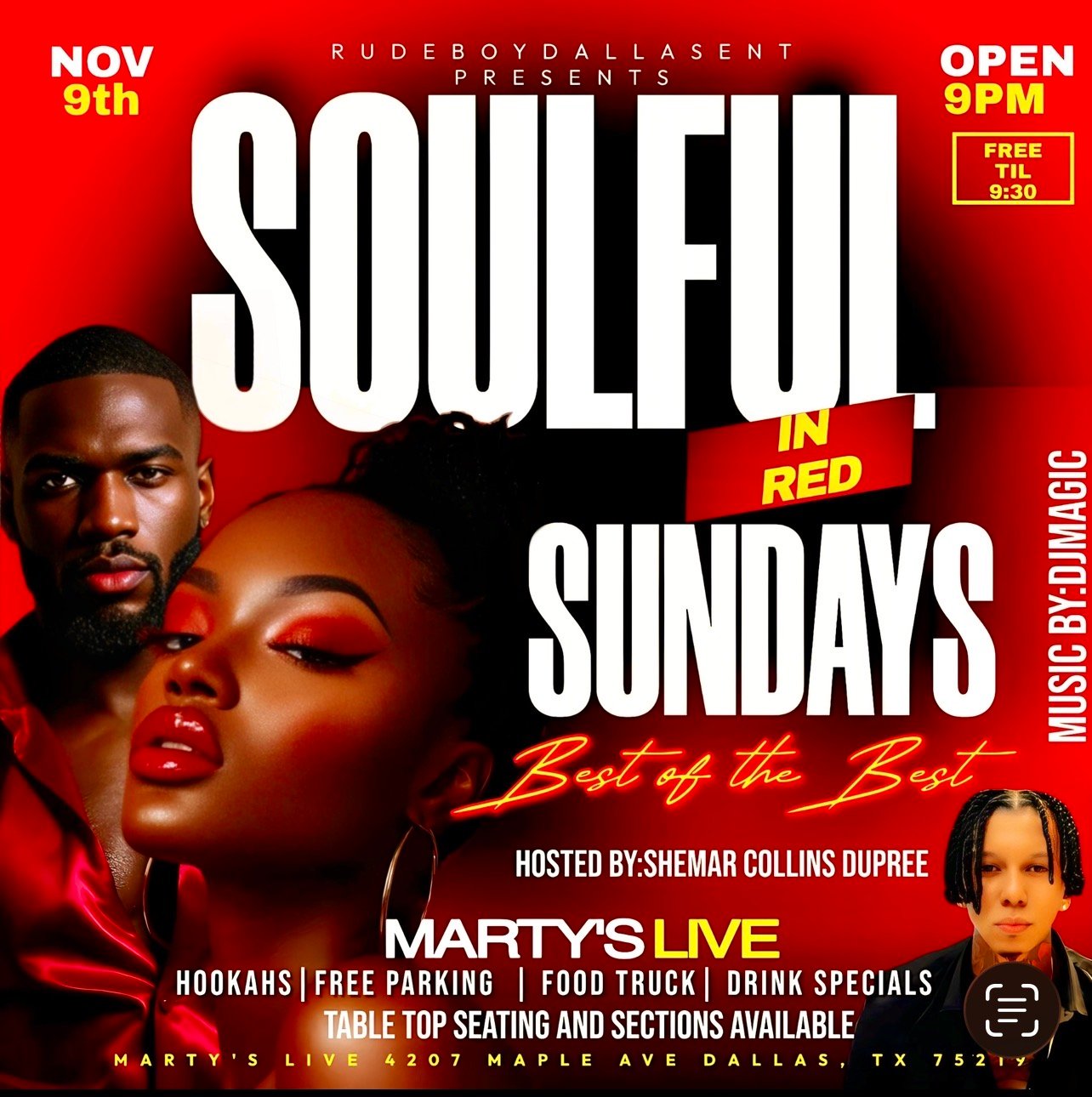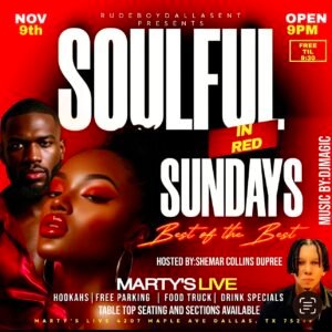 Catch the All new Grown & Sexy Vibe happening at Marty’s Live with the electrifying Soulful Sundays. This WEEKEND in celebration of Scorpios Season join us for SOULFUL SUNDAY IN RED hosted by Shemar Collins Dupree. Marty’s Live on Sundays is home of the $5 UCall it