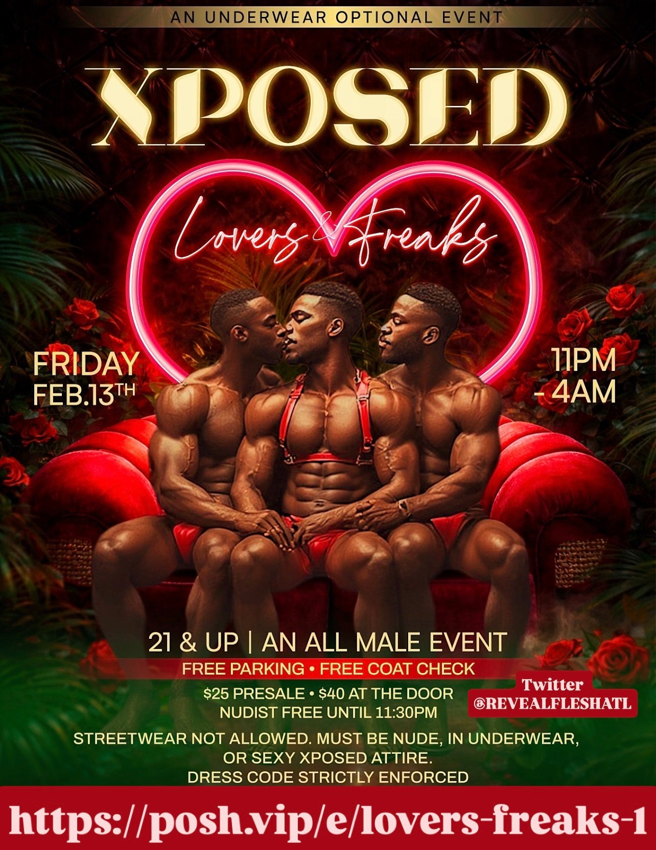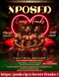 From the creators of REVEAL we present to you Xposed an all male underwear optional event for Lovers💖 & Freaks❤️‍🔥. All men All Xposed. Streetwear not allowed. Must be in underwear, nude, or sexy Xposed attire. Dress code strictly enforced!!